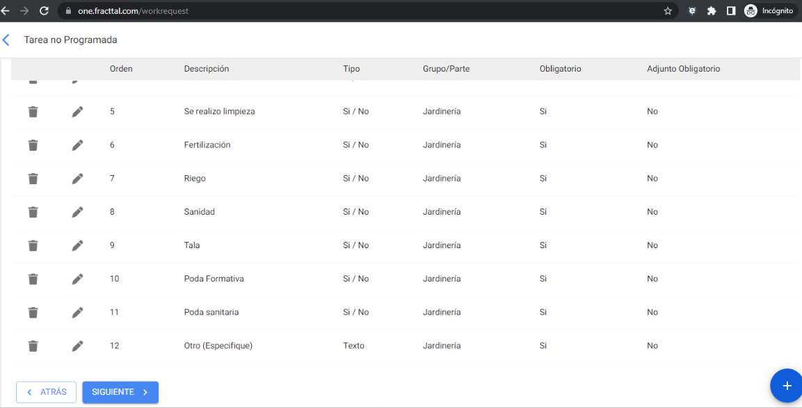 crear un plan de tareas, para las tareas no programadas.