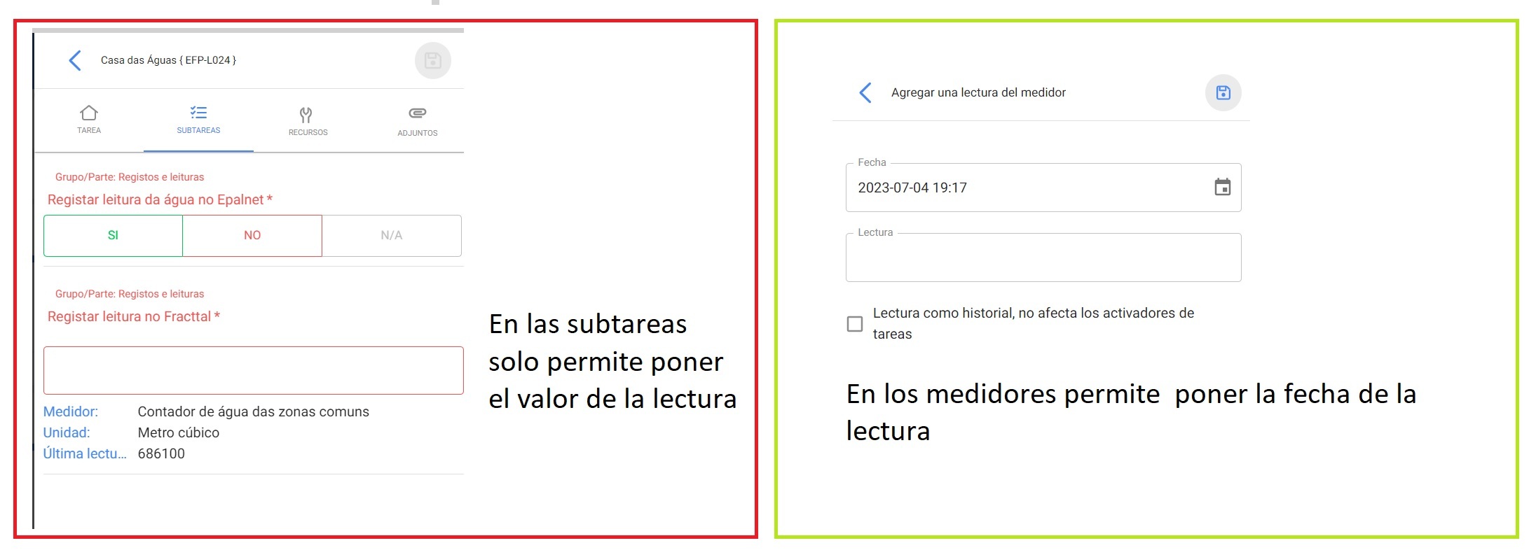 En el módulo de tareas, submódulo órdenes de trabajo, al completar una subtarea del tipo lectura de medidor, debe ser posible poner la fecha de la lectura, como cuando se registra la lectura manualmente en el medidor.