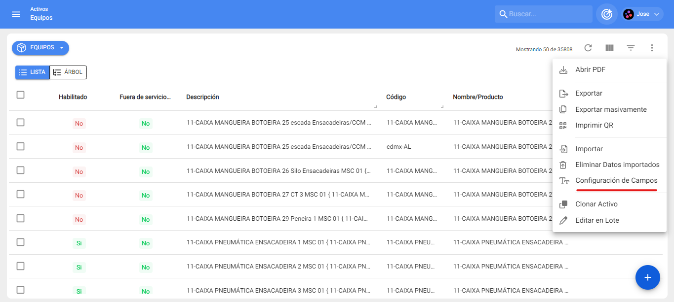 1. Ingresar al módulo Activos -> Equipos