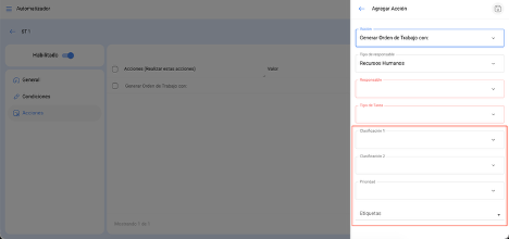 Cordial saludo. Te contamos que tu sugerencia ha sido aplicada en Fracttal One. Ahora, al definir la acciones para la creación de ordenes de trabajo por medio de una solicitud se podrá definir la clasificación 1, clasificación 2, prioridad y las etiquetas.