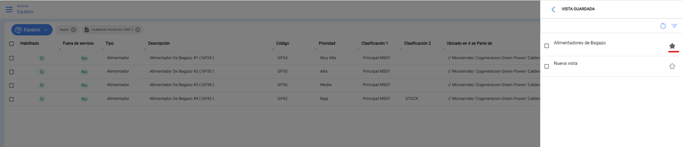 6. Luego al realizar estos pasos se puede volver al icono de vistas para consultar todas las vistas guardadas, donde se selecciona con la estrella la vista que se desea tener por defecto siempre al ingresar a la plataforma.