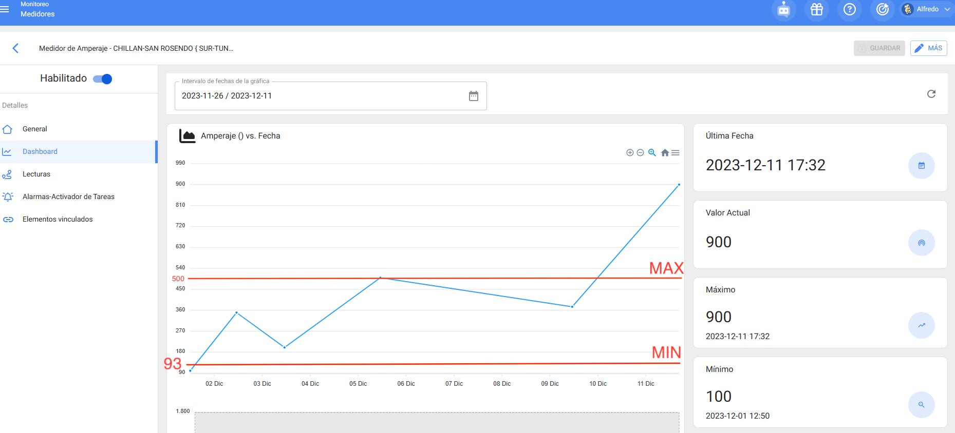 Vemos de gran valor la inclusión de líneas de referencia del valor máximo aceptado y el valor mínimo aceptado en los gráficos del módulo de medidores, ya que es una práctica analítica fundamental que permite identificar y comprender de forma más eficaz el comportamiento de una tendencia.