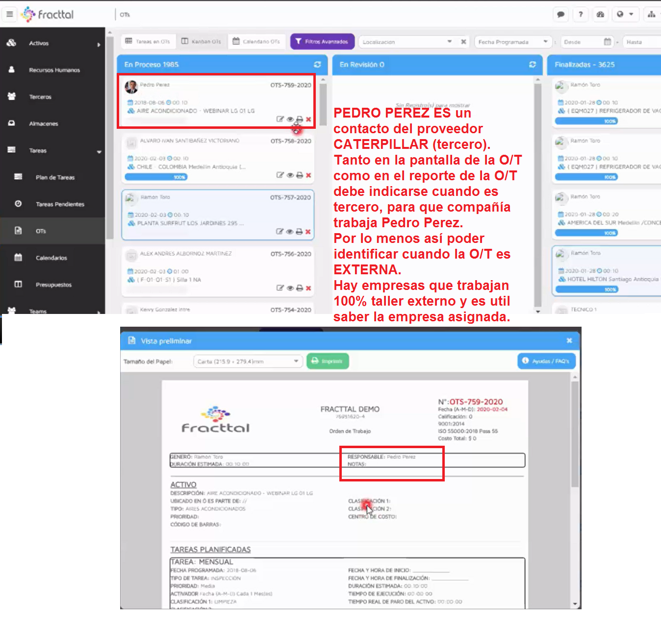 Según lo revisado, en la O/T uno le puede asignar un contacto que pertenece a un proveedor tercero de servicios. Volviendose la O/T de manejo externo.