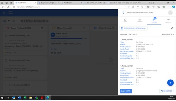 Cuando añadimos un recurso a una orden de trabajo no tenemos acceso a la fecha de creación del mismo. Nos interesa que esa fecha sea editable ya que se debe corresponder con la intervención del tercero pudiendo registrar un lunes un trabajo de un tercero que se llevo a cabo el viernes, lo cual no es la realidad y además es necesario para poder contabilizar los servicios.