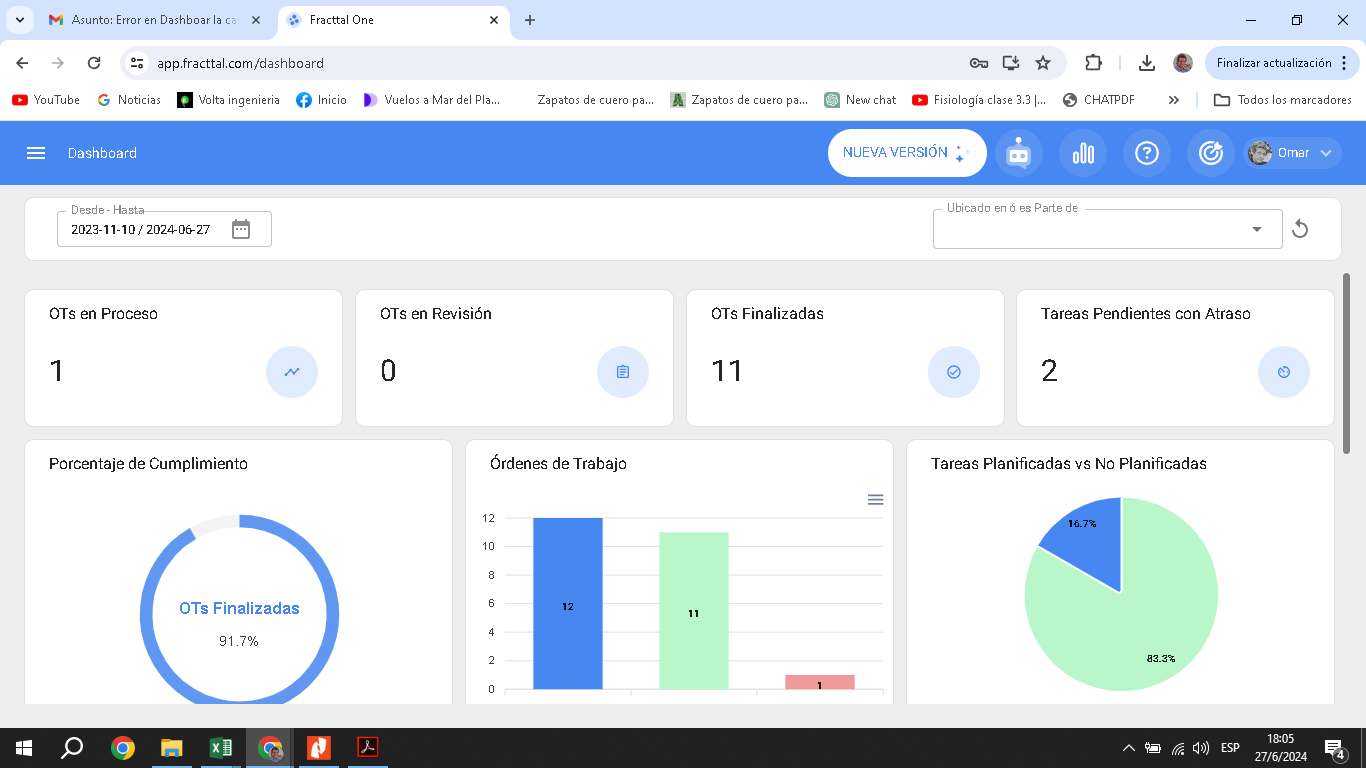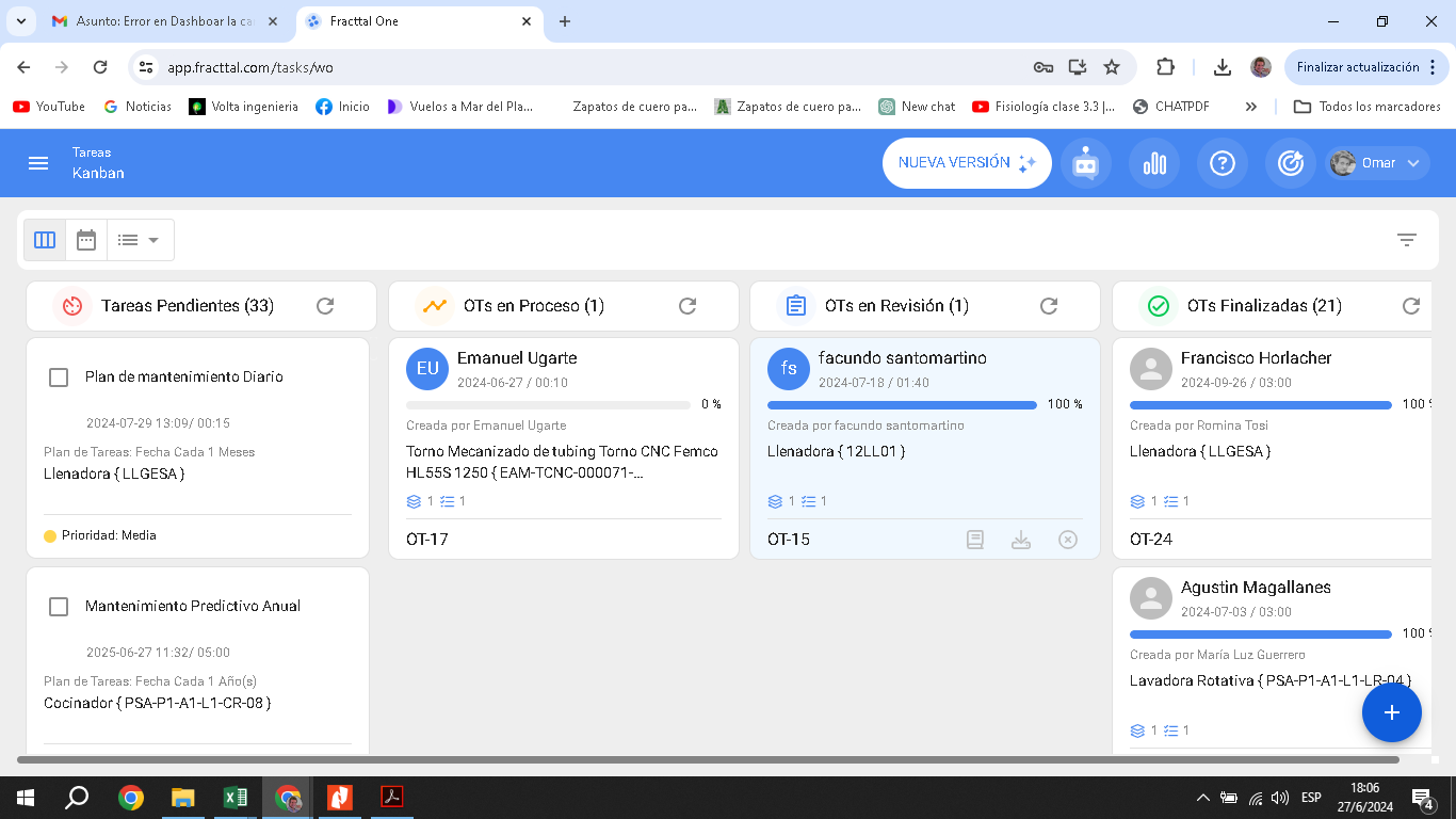 2) De lo contrario si te deja habilitar como hasta ahora: que coincida el N° OT realizadas en Dashboar con el N° de OT finalizadas en tareas Kanban