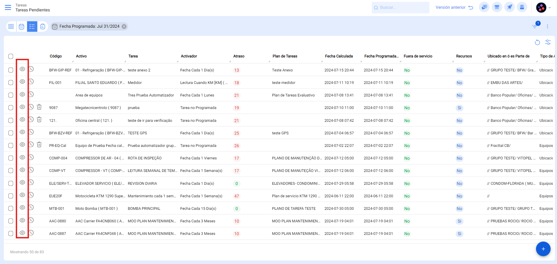 Cordial saludo, actualmente el acceso al detalle del activo se encuentra disponible en la vista lista de las tareas pendientes. ¿puede esto dar manejo a la surgencia dejada?