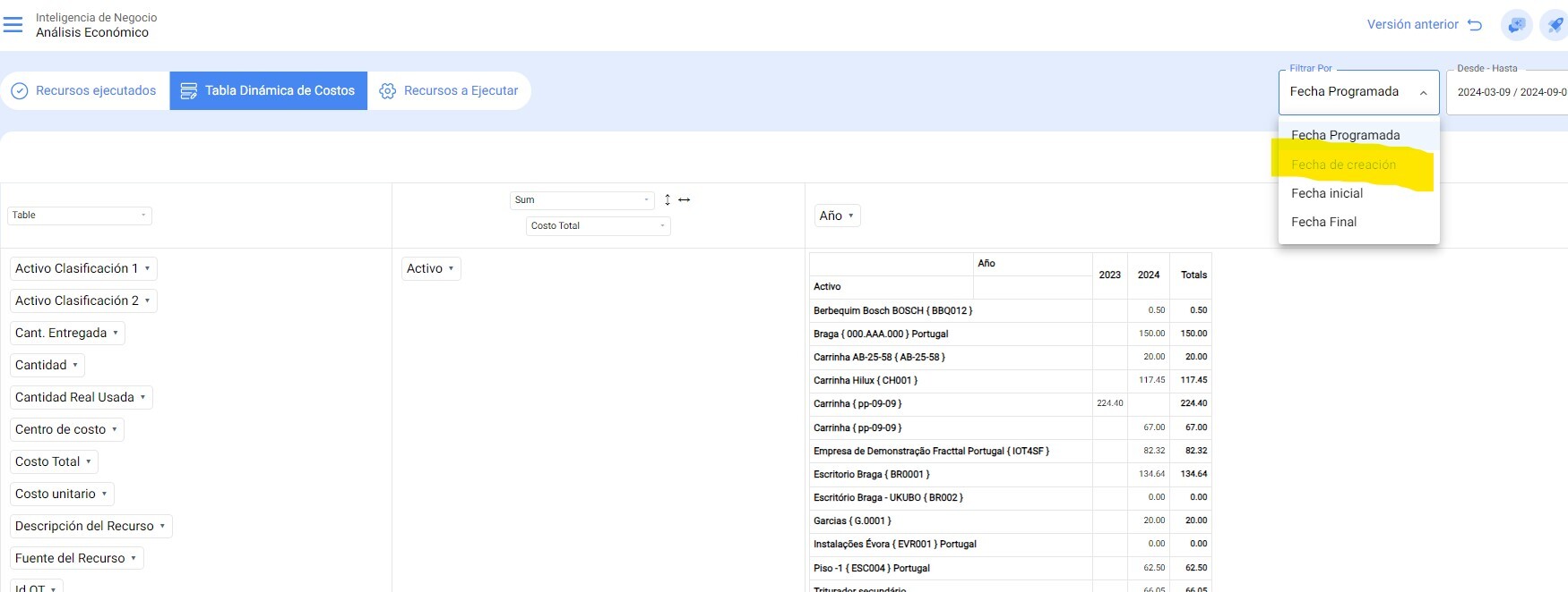 No es posible selecionar la fecha de criación de orden de trabajo en el filtro.