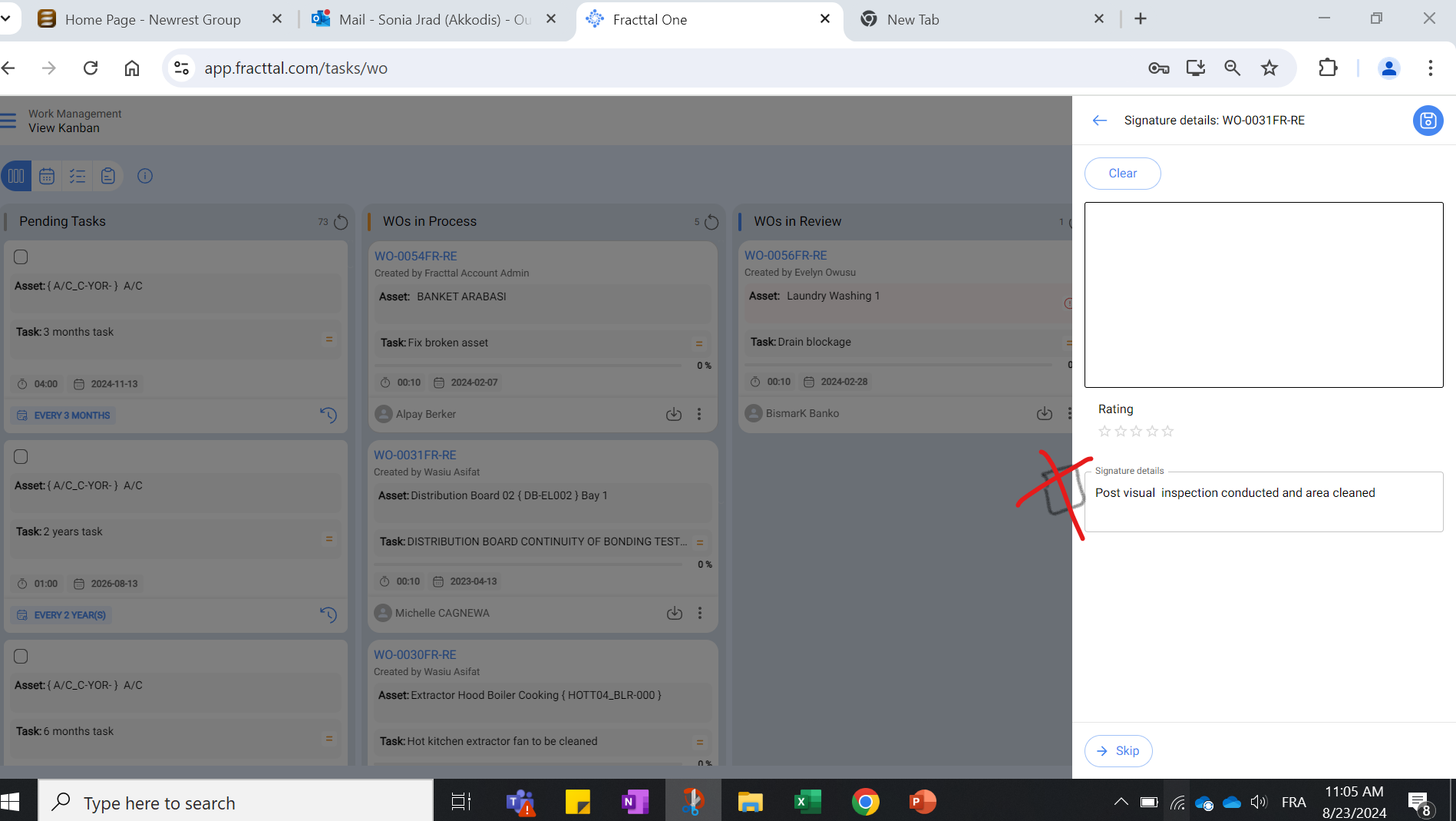 En el caso de NR, este paso es esencial para la confirmación de actividades de seguridad e higiene, cuando se tienen que dejar las áreas de los trabajos limpias después de un trabajo realizado, por lo cual debe ser un checklist al final de estas dos fases y que sea obligatorio.