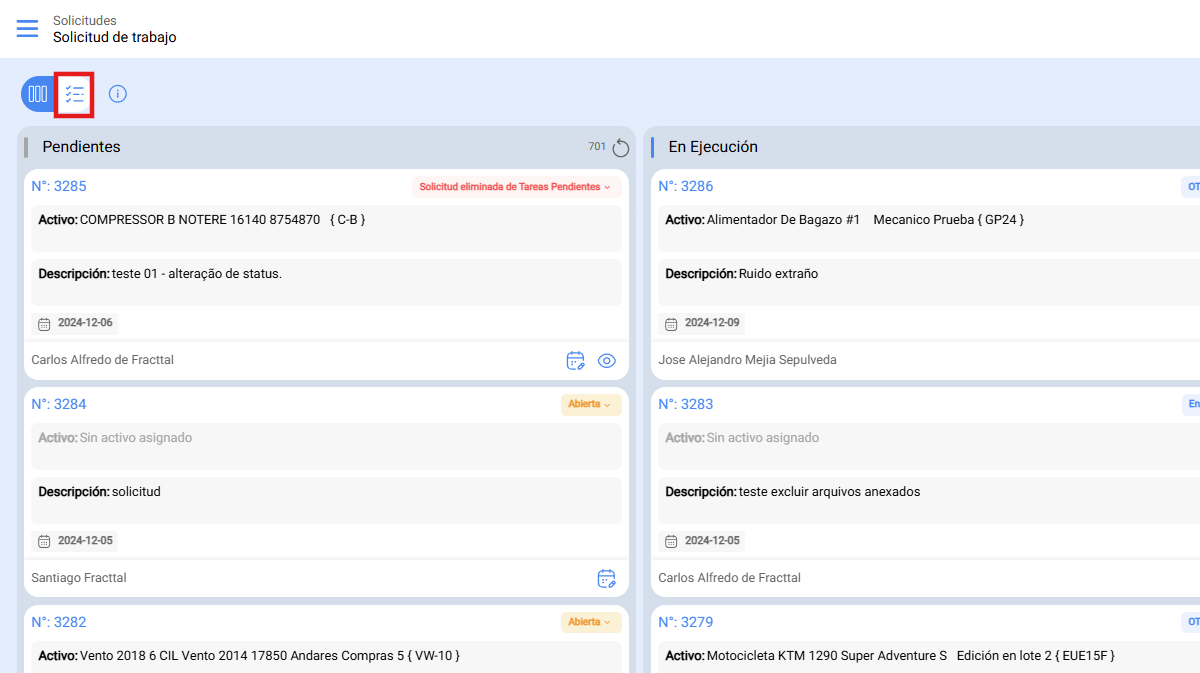 1. Ingresar a la vista lista de las solicitudes de trabajo