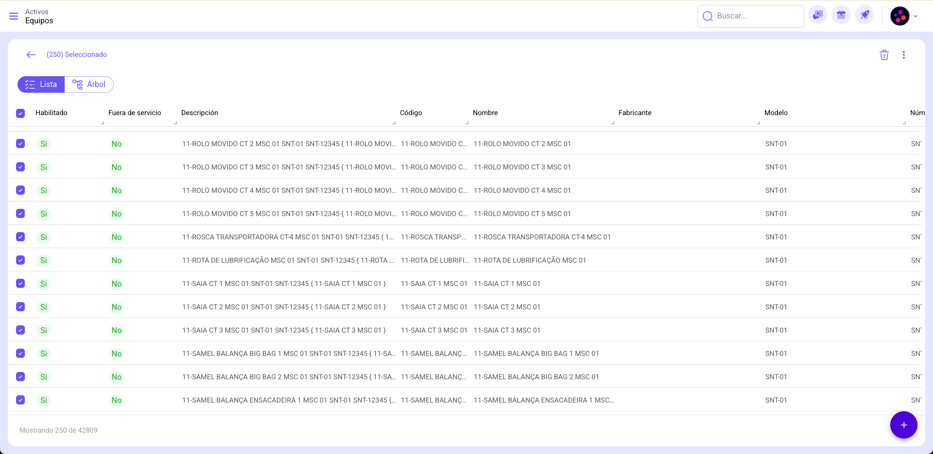 En Fracttal One, los datos se cargan en bloques de 50 y, a medida que se desplaza, se van cargando los siguientes registros. Este funcionamiento es similar a una paginación.