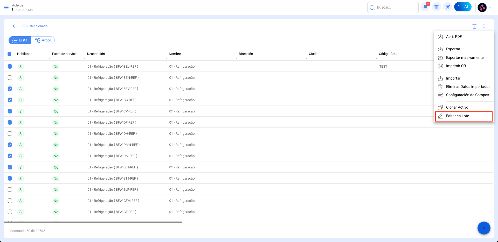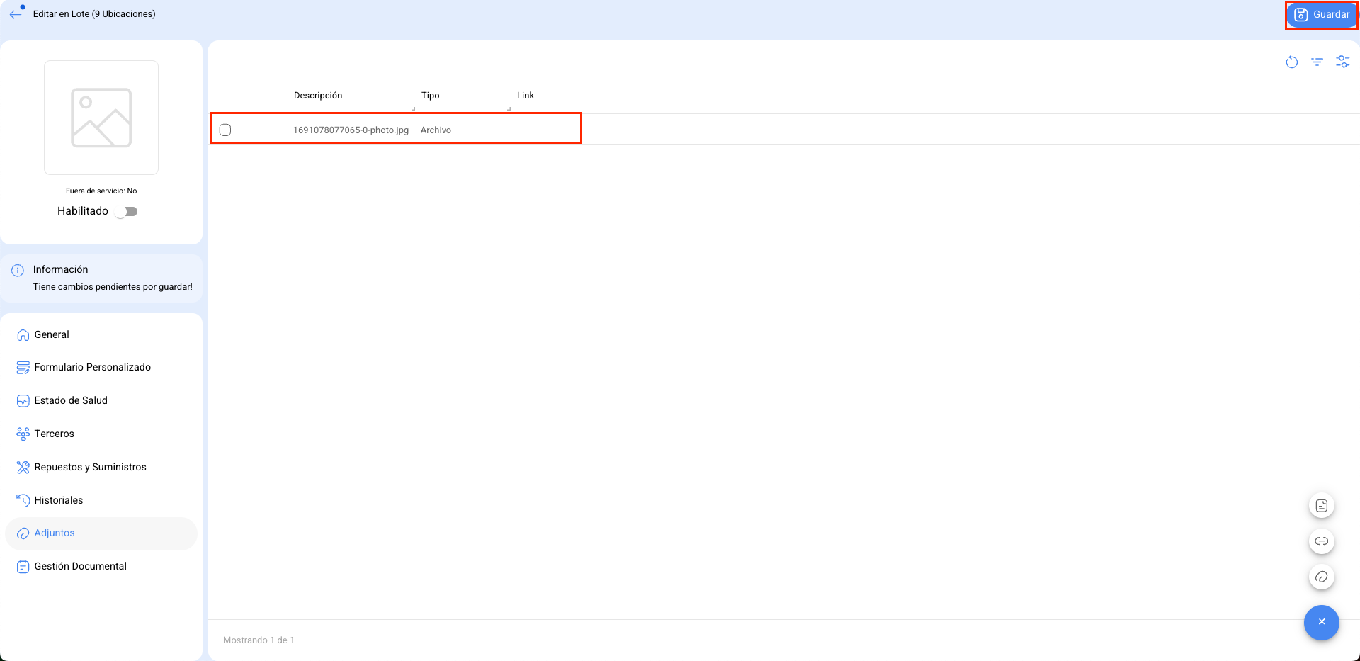 Nota: Toda información agregada en este proceso será la misma para todos los activos relacionados.