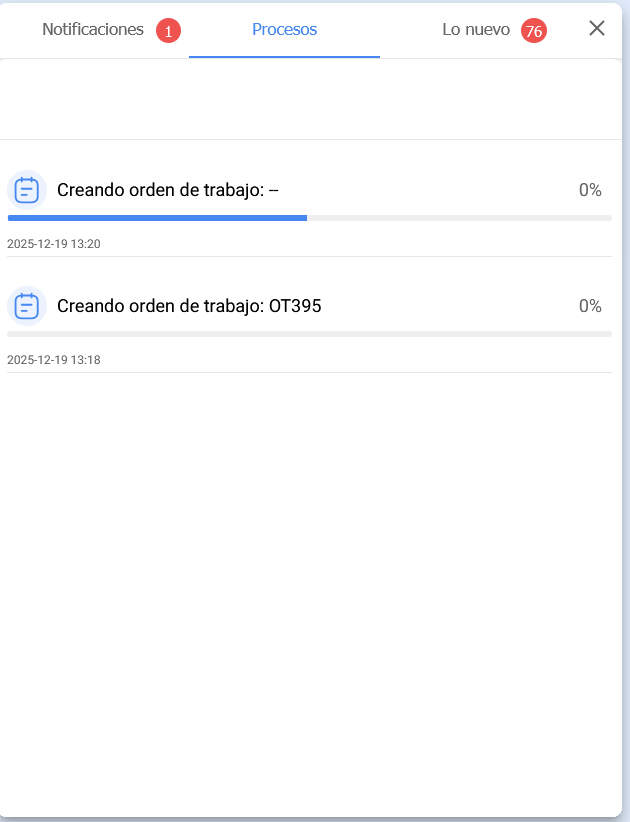 He notado que desde la semana pasada la plataforma tarda mucho para crear las ordenes de trabajo, hoy incluso ya tengo más de 10 minutos esperando y no las ha creado.