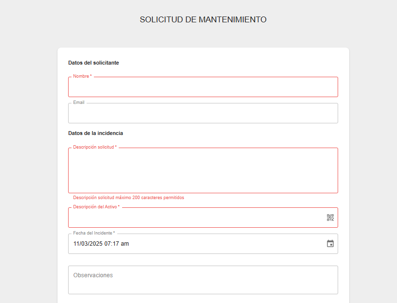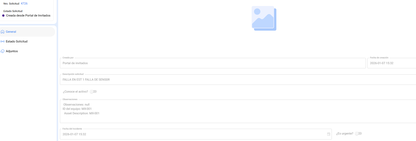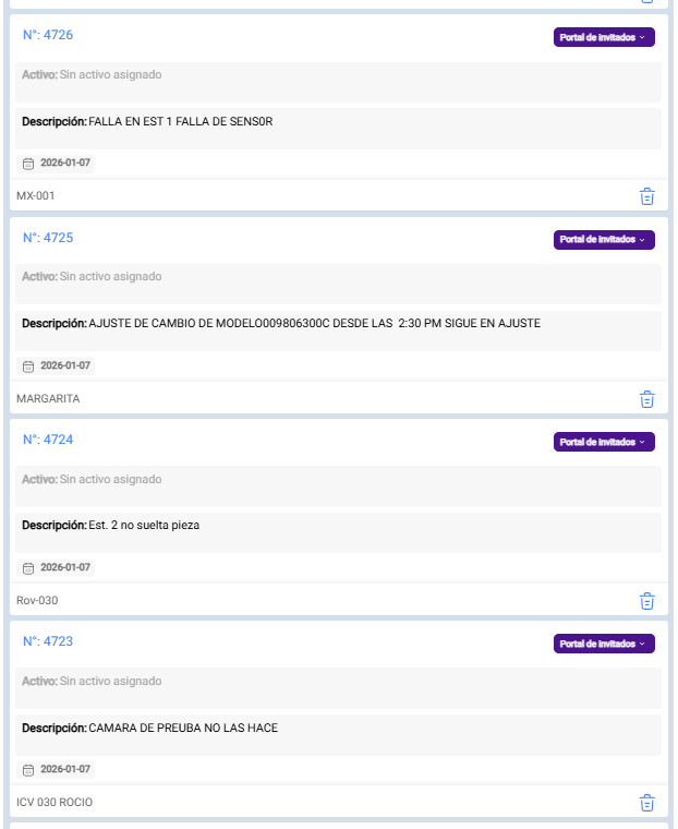 Actualmente en el sitio, el personal de producción genera solicitudes cada que un equipo falla, no tienen correo de la empresa entonces como tal no puedo generarles cuenta en Fracttal. Están ingresando las solicitudes desde el portal de invitados, pero estamos teniendo problemas con esto, debido a que en el recuadro descripción del activo solo trae la opción de escanear el QR, si se agrega manual el # de máquina no se refleja en el módulo de solicitudes, aparece en blanco el campo de activo y esto nos genera conflicto ya que si se limita los usuarios por áreas no pueden visualizar las solicitudes, hasta que se convierta en OT, se tiene varios equipos y es más complicado rastrear las solicitudes sin esta información, ya se tuvo un hallazgo en una pre.auditoria en las líneas auditando, falló un equipo, producción genera la solicitud se pide al depto. revisar la solicitud pero no se pudo localizar con el ID, tuvimos que buscar entre todas las solicitudes reportadas durante el turno.