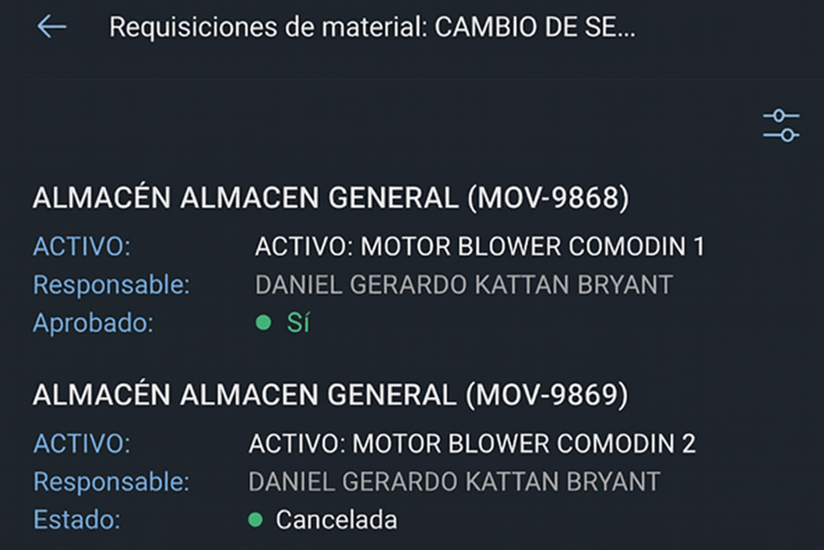 Cuando se crea una OT con dos o más Equipos/Activos, las requisiciones se generan en el módulo de almacén. Sin embargo, es difícil diferenciarlas porque no indican a qué activo corresponde cada "MOV". Si los recursos en ambas OT son idénticos, sacar una requisición se vuelve una lotería.