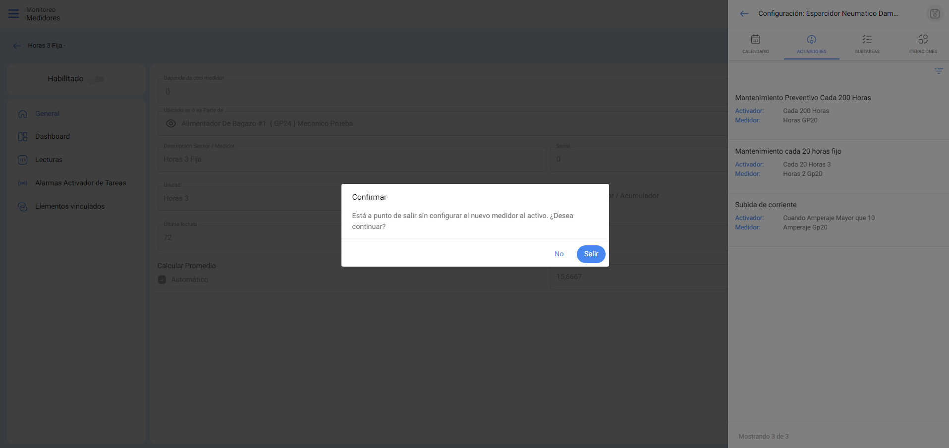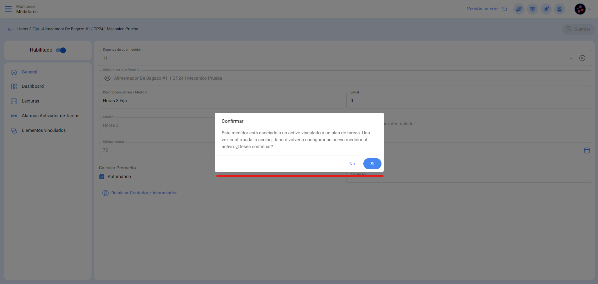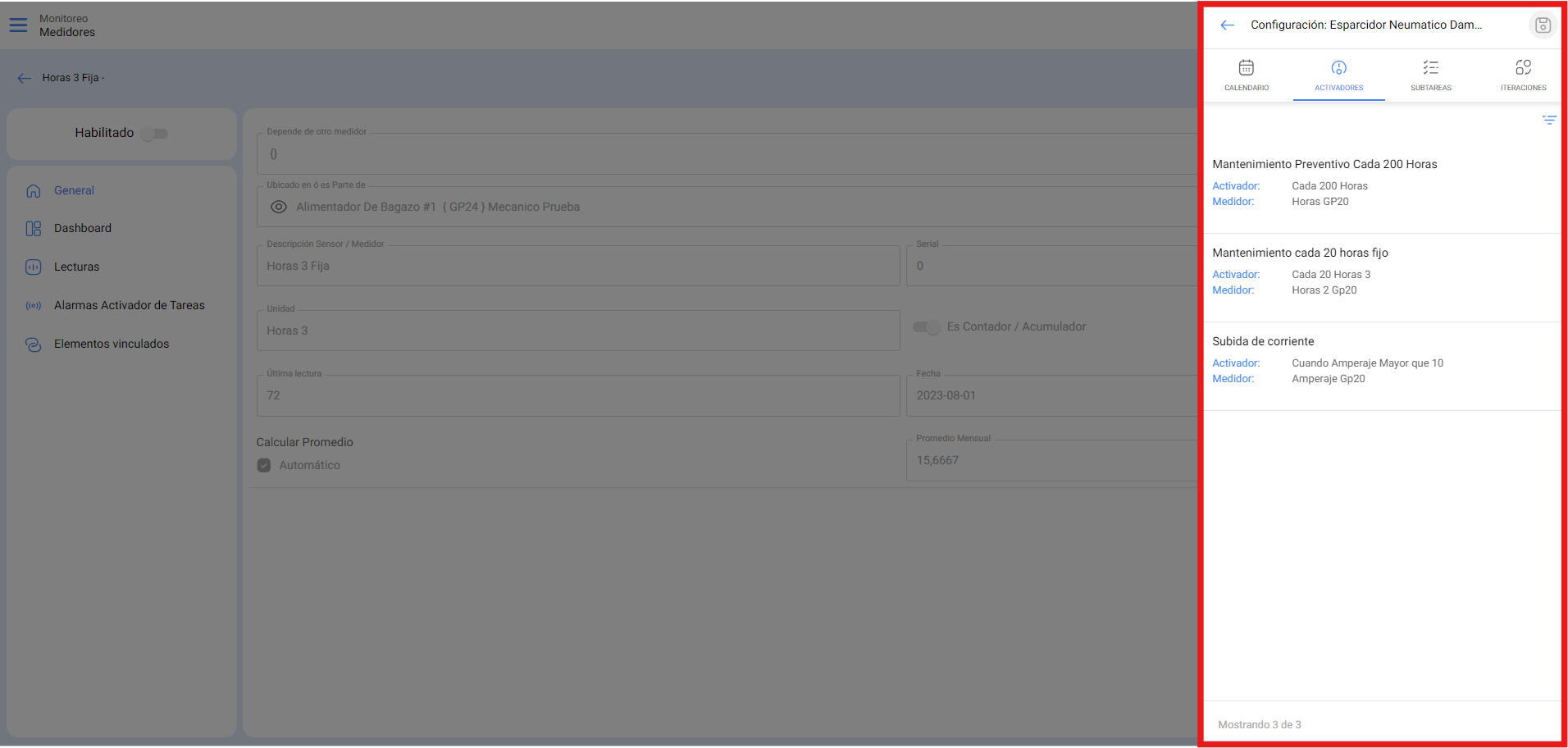 3. Para el caso donde el activador pertenezca o este asociado a una tarea del activo, se debe seguir los pasos como se muestra en al momento de deshabilitar.