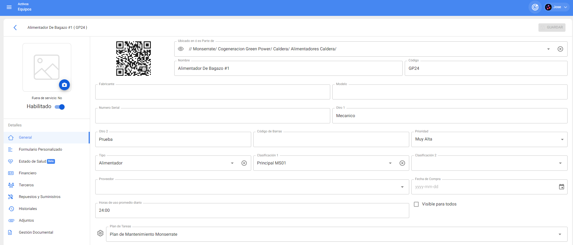 1. Ingresar a la la hoja de vida del activo que se creara el QR publico