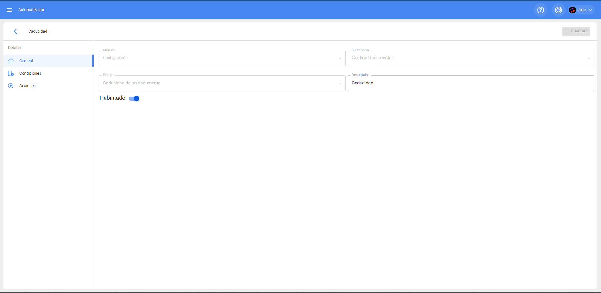 Agregar mas condiciones cuando se desea crear un automatizador sobre el submodulo de gestion documental, para poder separar los avisos de vencimientos por grupos de documentos ej. contratos de trabajo, certificados de calibracion, etc.. Ya que al querer darle una condición en el Automatizador que los separe nos encontramos que solo nos da la opción de agregar una condición de “Documento” si “es igual o no es igual” y luego seleccionar el documento en particular