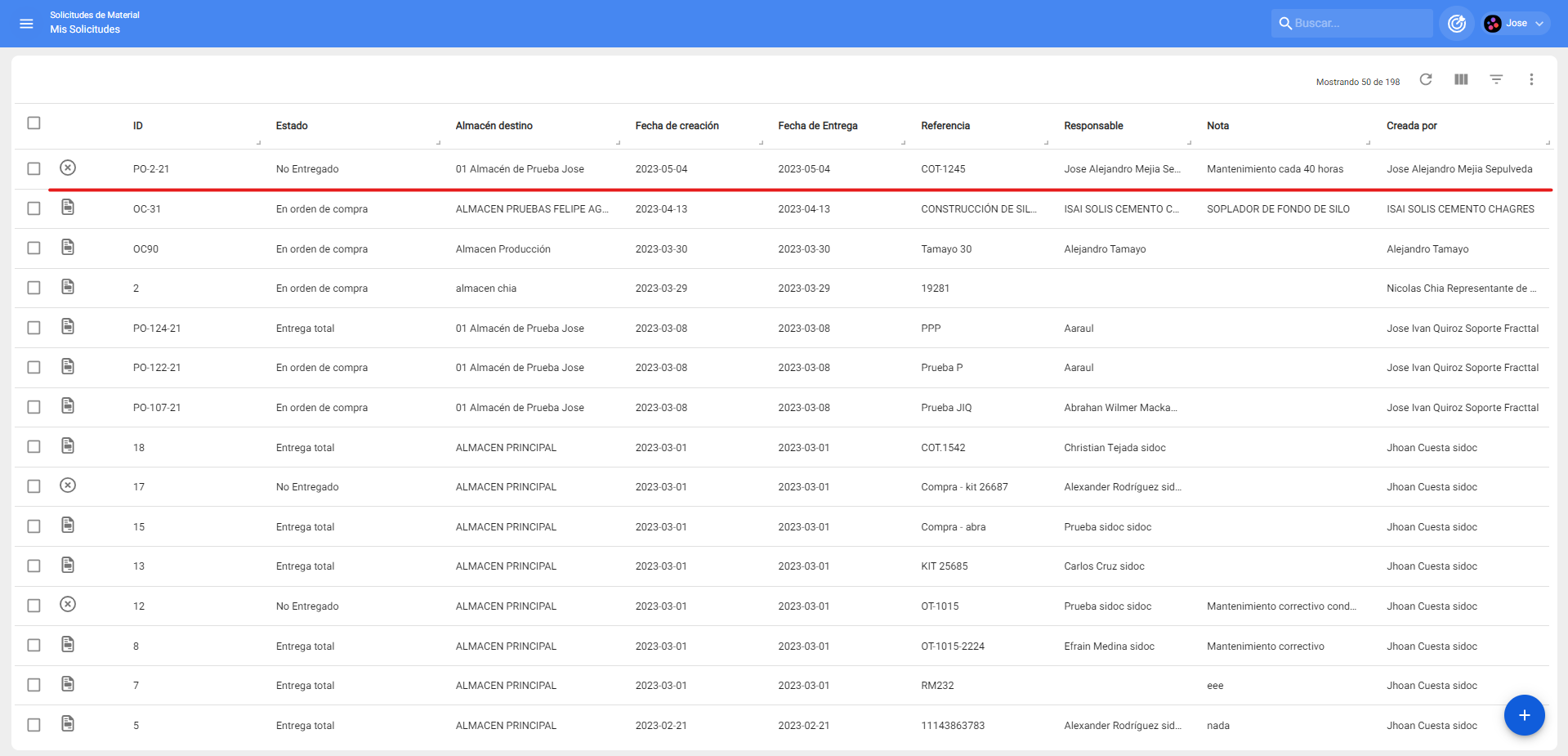 4. Por ultimo, solo quedaría gestionar la solicitud de material. Esta acción se realizara directamente en el almacén en el que fue realizada esta solicitud.