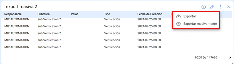 Cordial saludo. Nos alegra informar que desde la ultima versión de Fracttal One, se ha integrado la opción de exportar masivamente los datos de las tablas en el módulo Fracttal BI, el cual permitirá extraer toda la información en el análisis de subtareas.