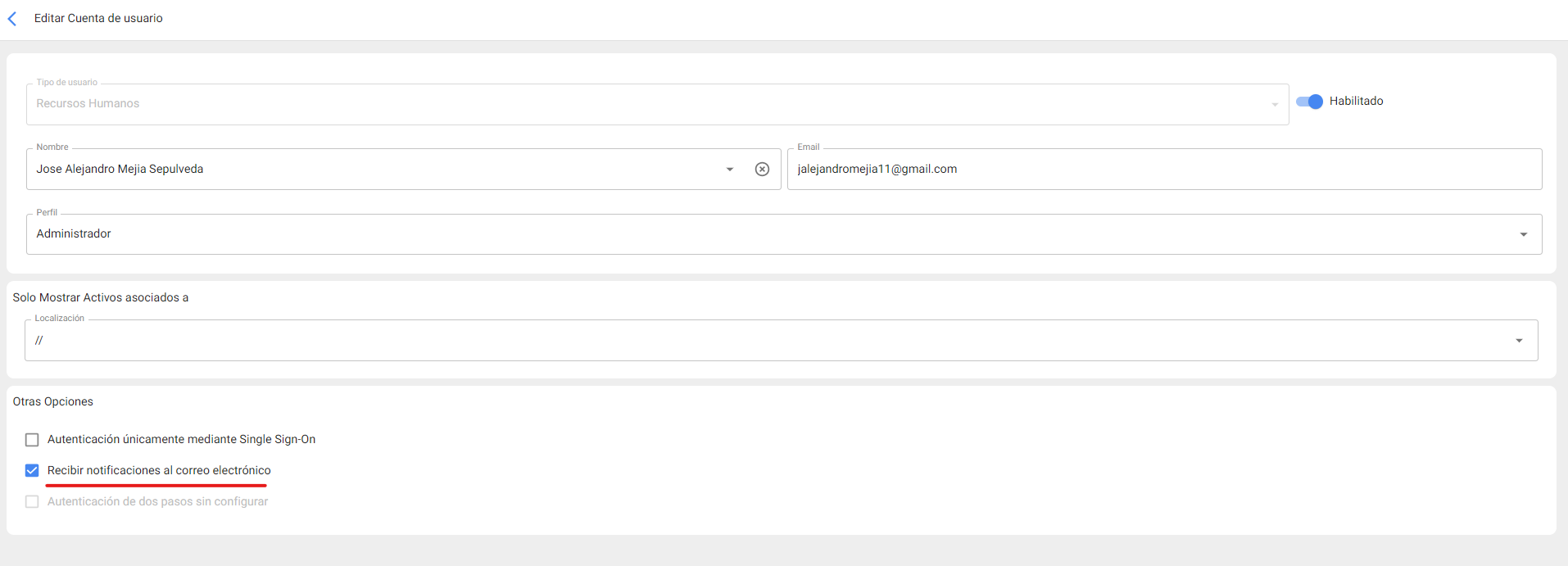 Considerar que para la recepción de estas notificaciones se debe tener habilitada la opción por usuario de notificaciones