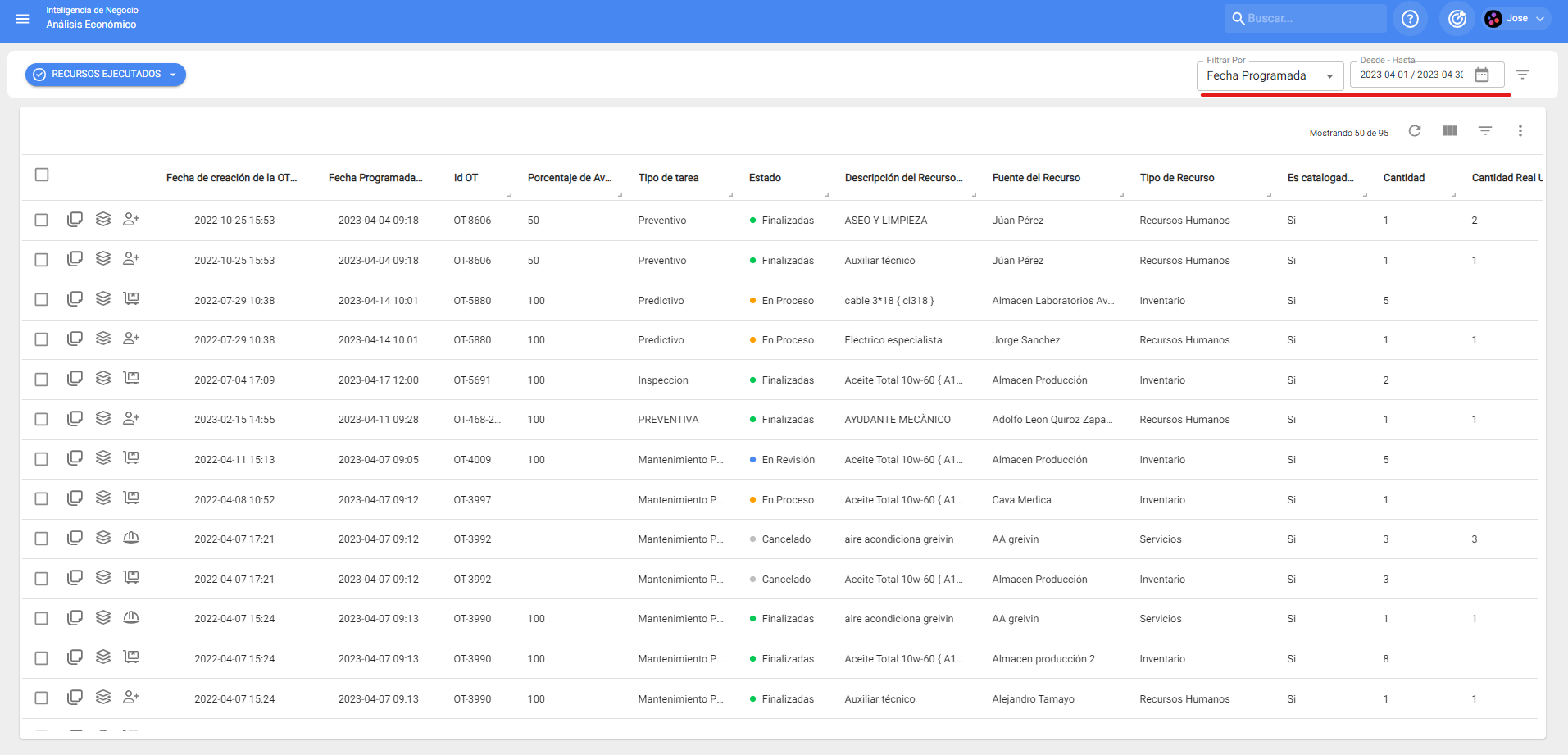 Cordial saludo Santiago, en Fracttal One tenemos la opción de realizar este análisis pero directamente desde el módulo Inteligencia de Negocios, a continuación te presentamos como puedes tener esta información: