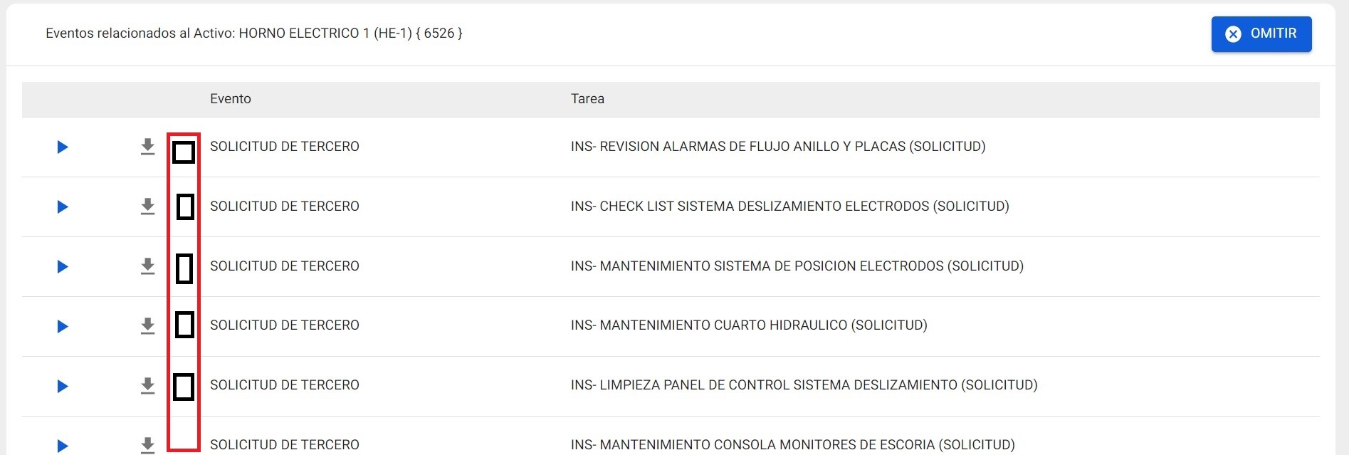Tener esta opción ahorraría mucho tiempo a los planificadores que tienen equipos que solo pueden ser intervenidos con tareas del tipo evento, ya que se podrían agrupar las tareas y lanzar los eventos o traer datos de las tareas seleccionadas a la vez.
