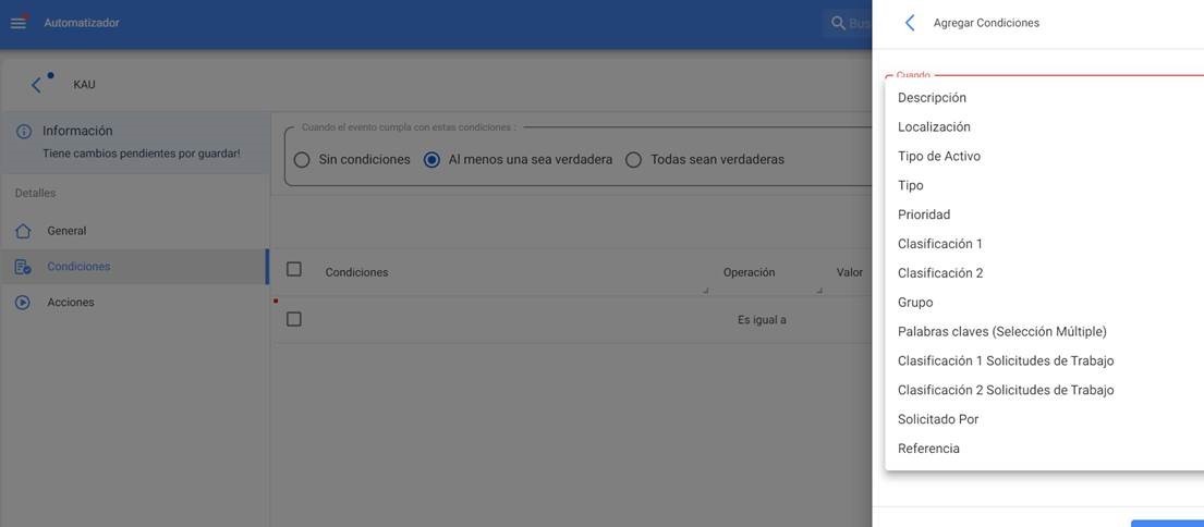 Cordial salido Francisco, nos alegra contarte que hemos implementado tu sugerencia en Fracttal One, ya que hemos mejorado el evento "Cambio de estado" donde ahora, se han agregado a las condiciones para el envió de la notificación se genere por un estado en especifico como se muestra en la siguiente imagen.