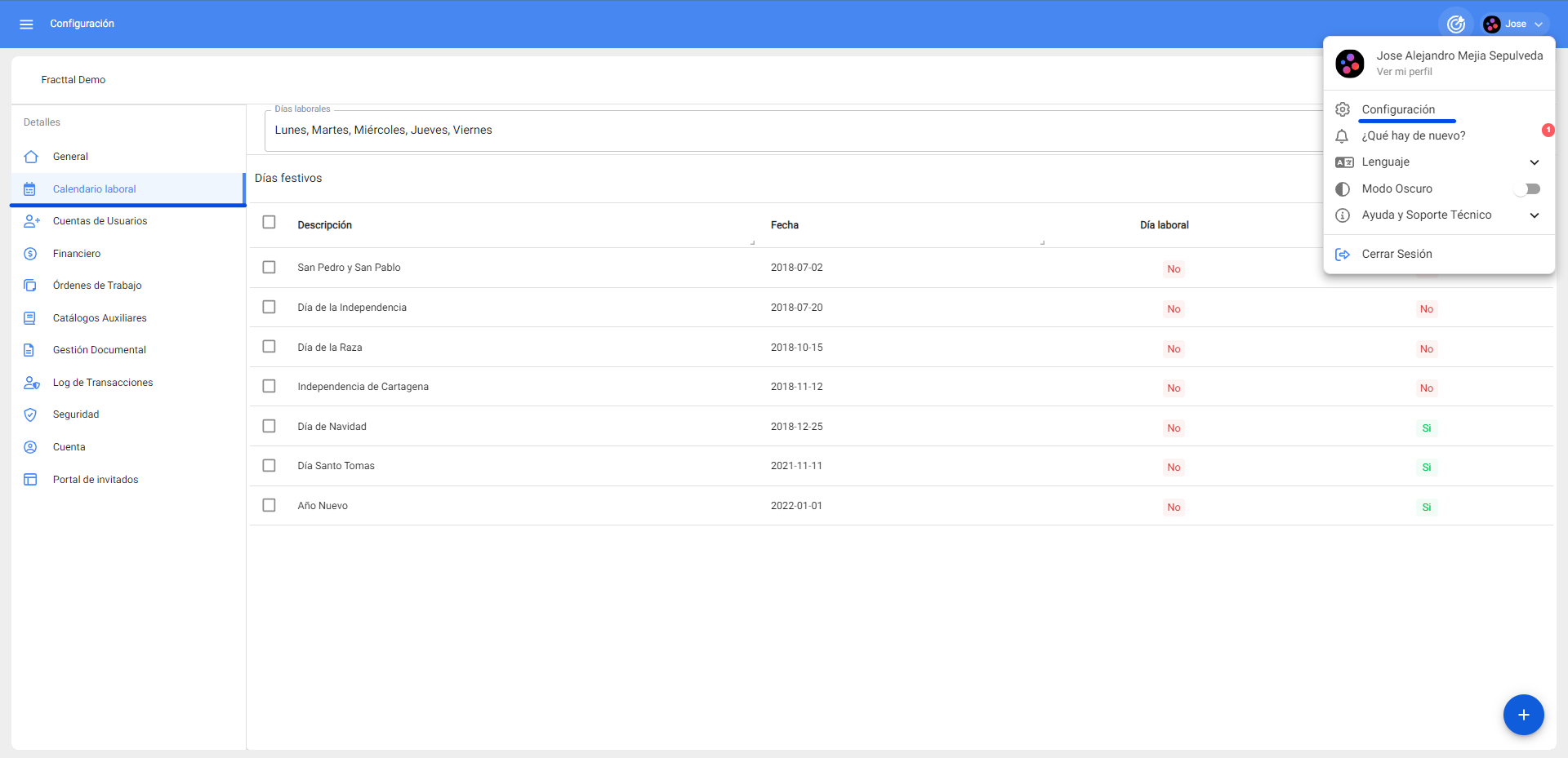 1. Ingresar el módulo Configuración y luego en el submódulo Calendario Laboral
