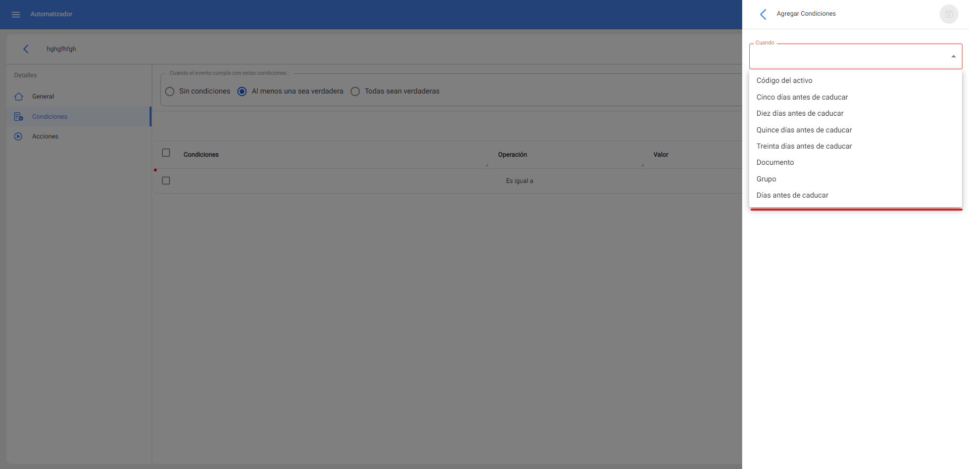 Cordial saludos salas, te contamos que hemos implementado una mejora en la regla para documentos y garantías, donde ya se tiene la posibilidad de definir la cantidad deseada con la que se desea recibir la notificación de vencimiento antes de que esto ocurra, para el momento que se de dicha notificación esta se seguirá enviando hasta que el documento sea renovado con la intención de que nunca se pierda de vista esta acción pendiente a realizar