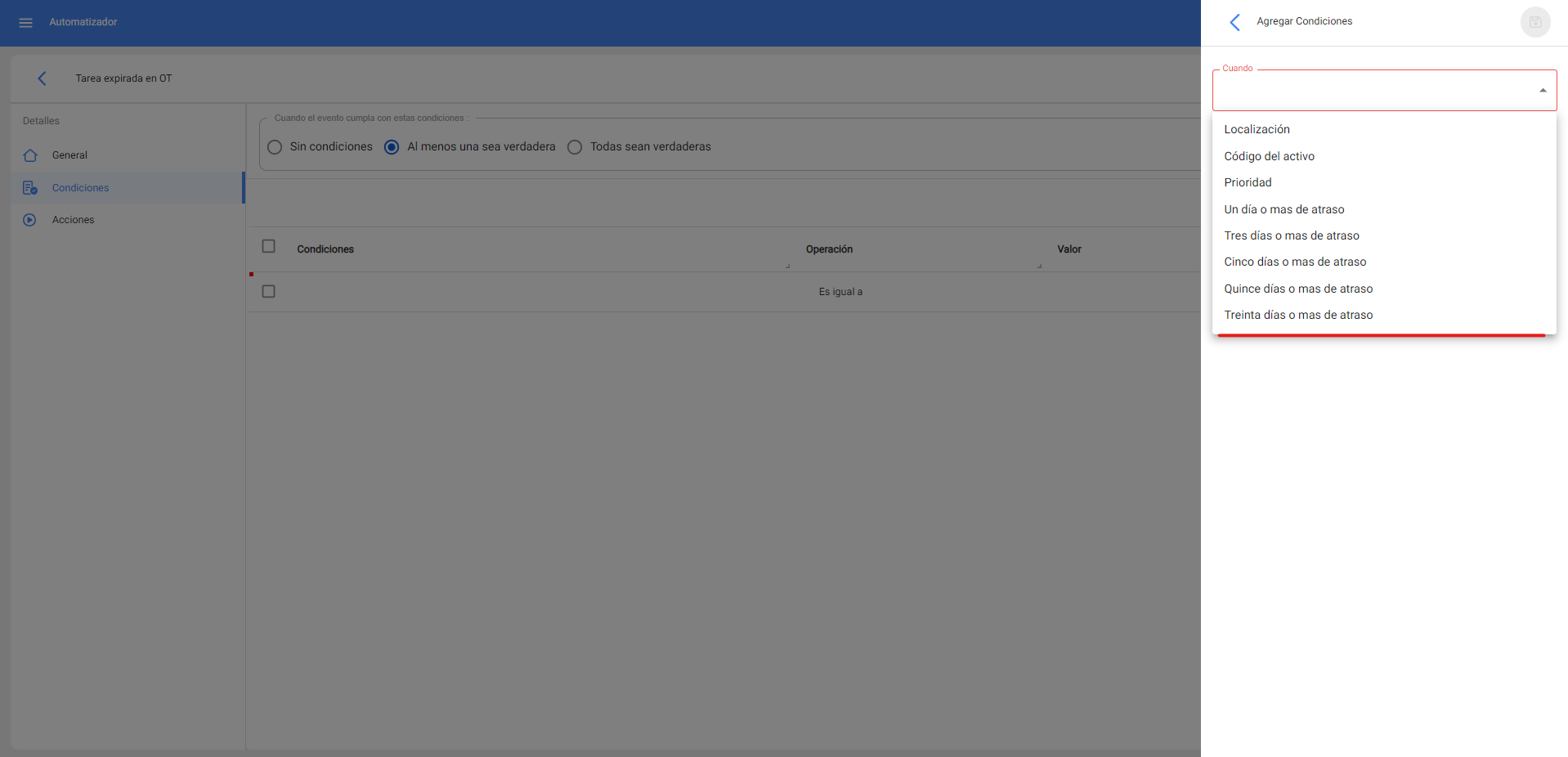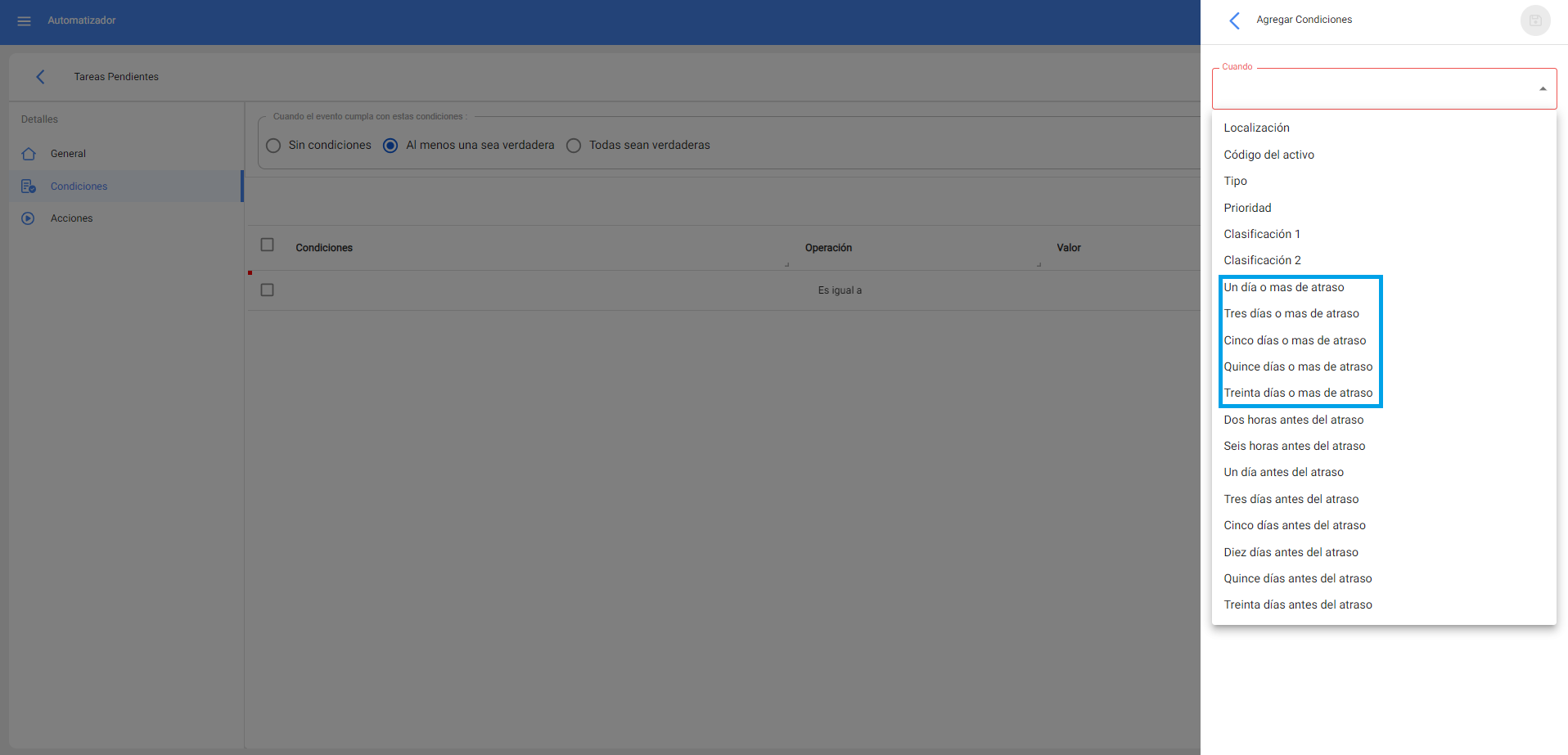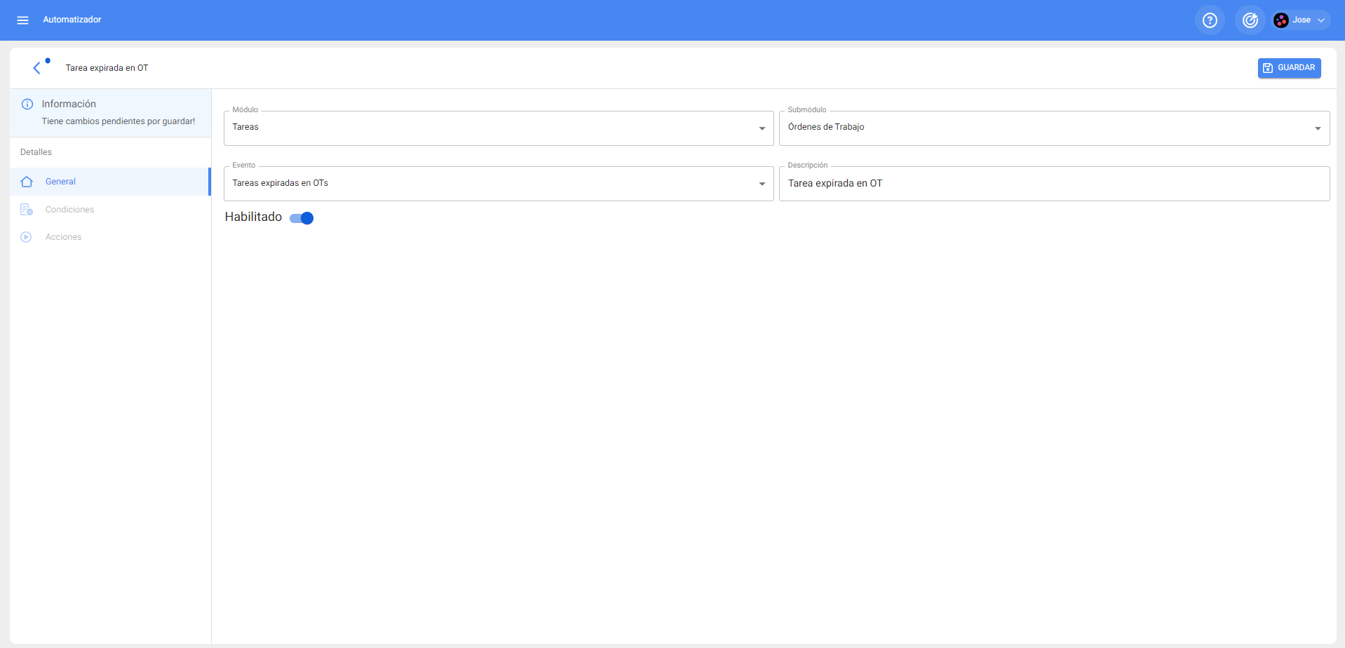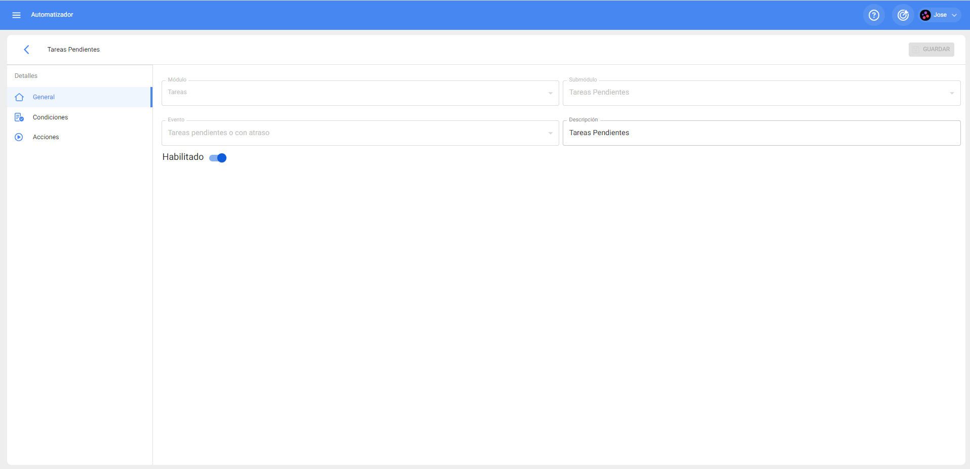 1. Ingresar al módulo automatizador y generar la regla para el módulo tareas pendientes como se detalla a continuación: