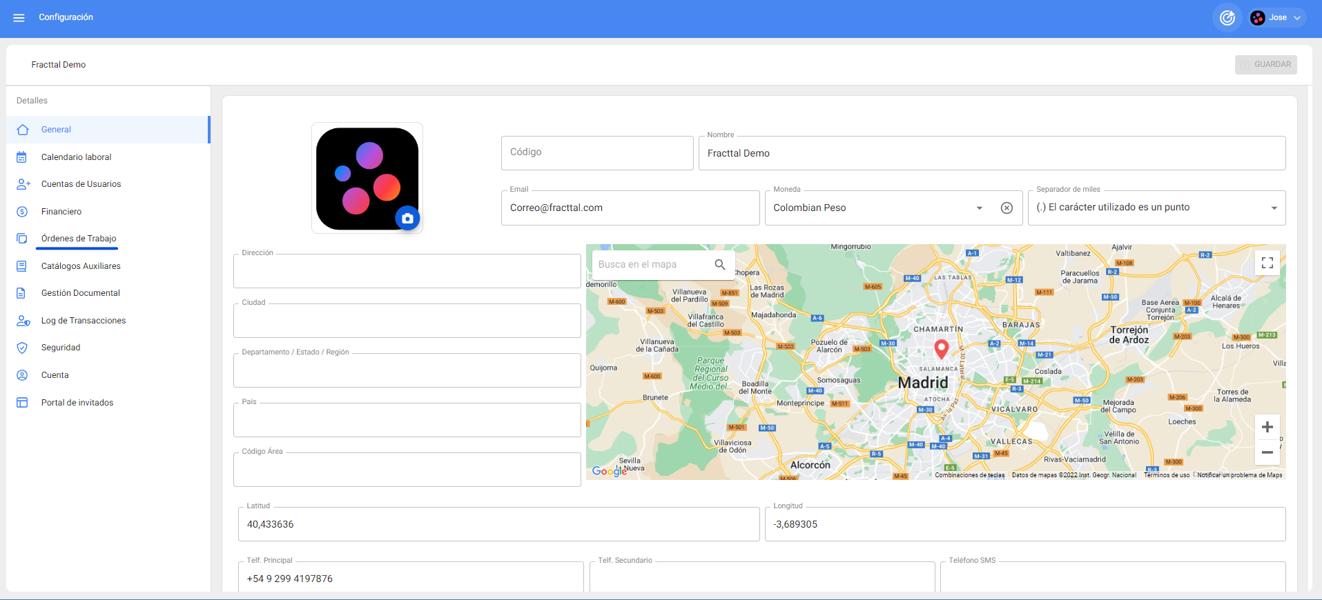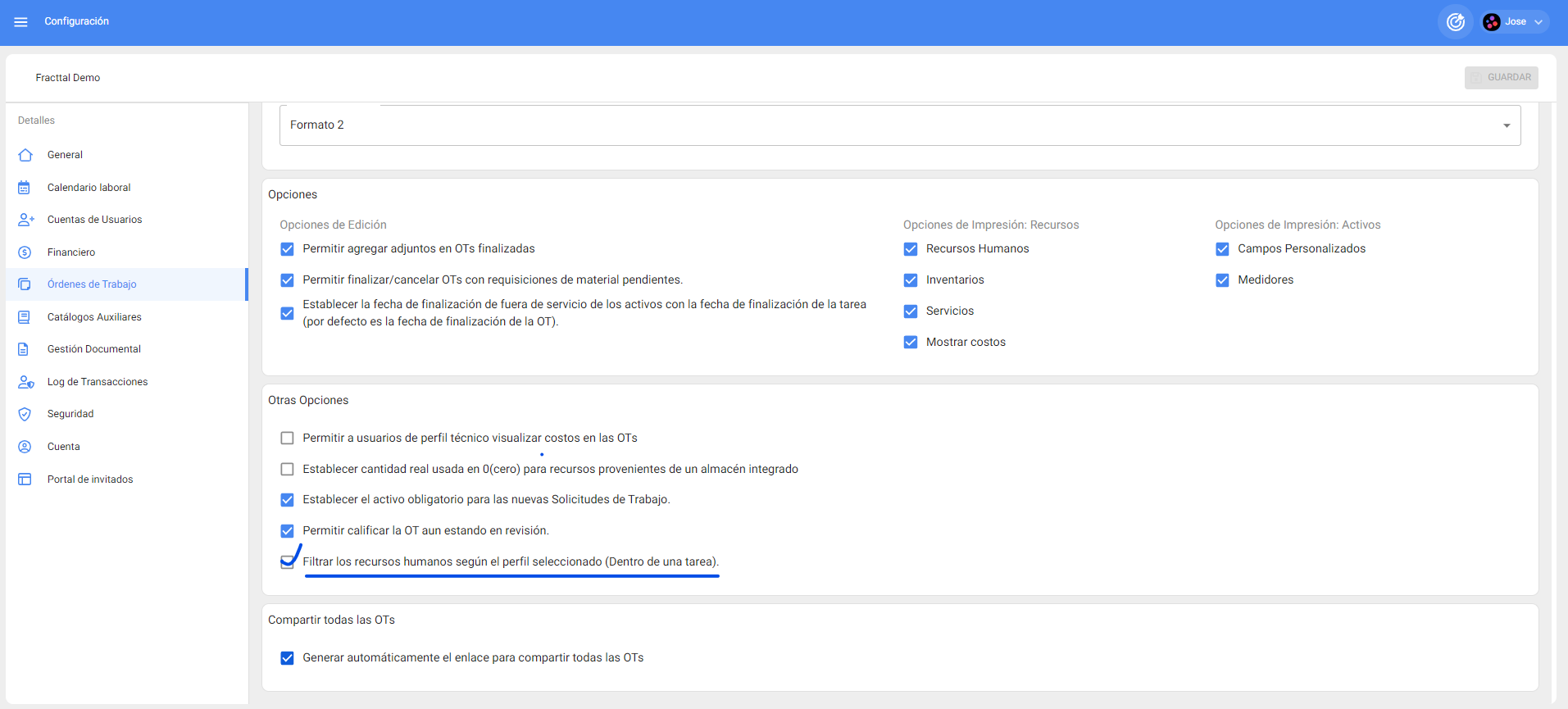 1. Ingresar al módulo Configuració, luego al submódulo Ordenes de Trabajo.